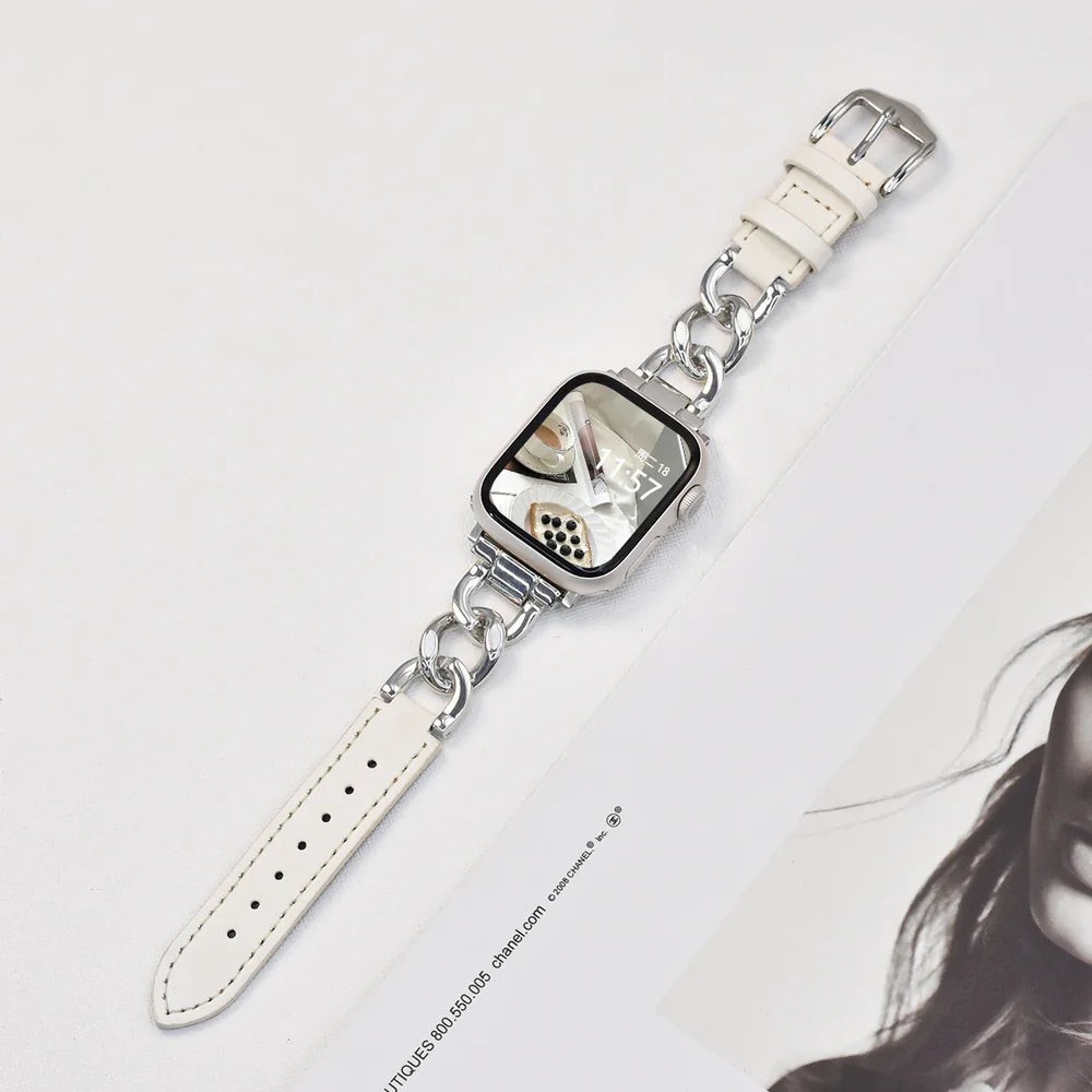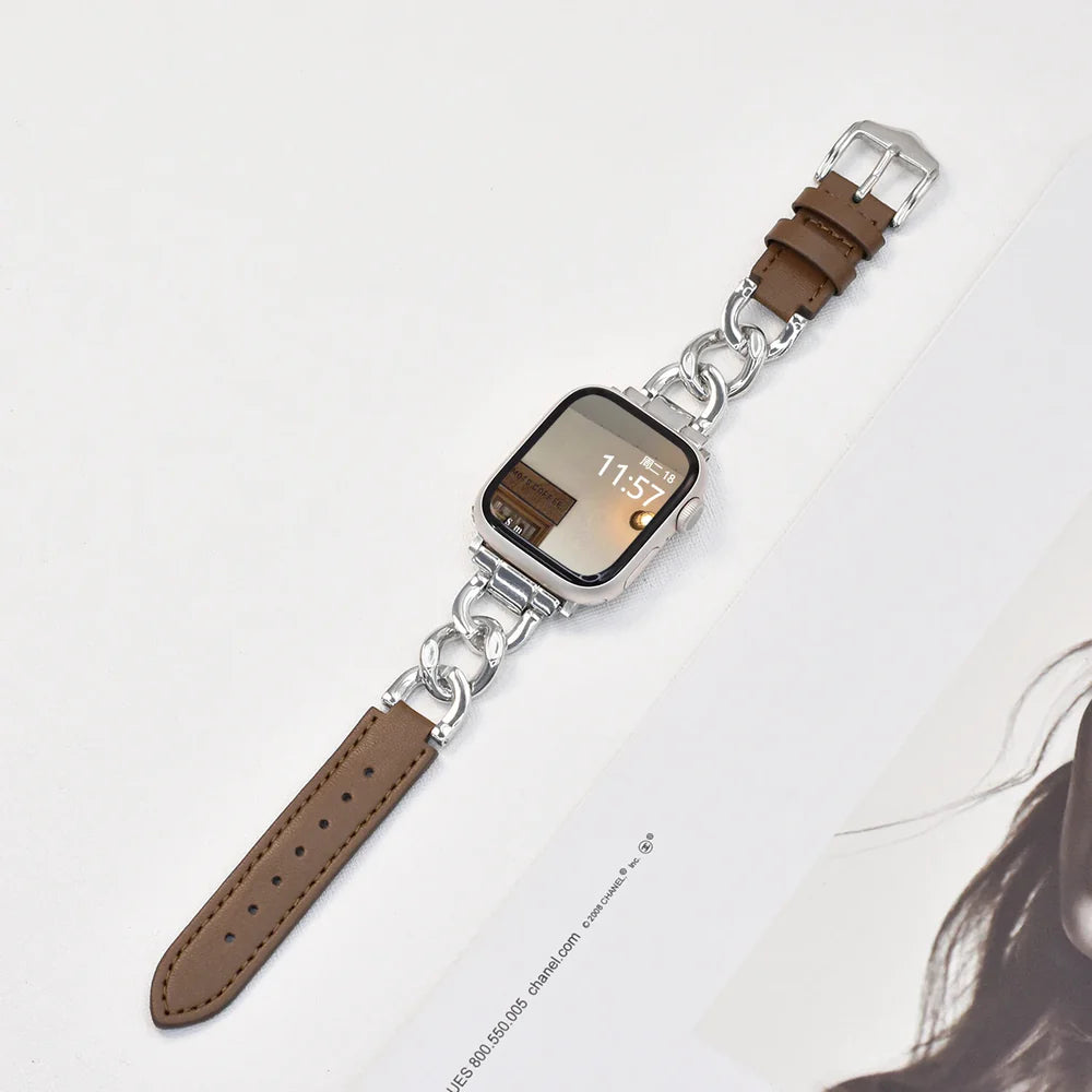 This high-quality metal leather strap for Apple Watch is a must-have for any user looking to elevate their device's style while also ensuring durability and comfort.