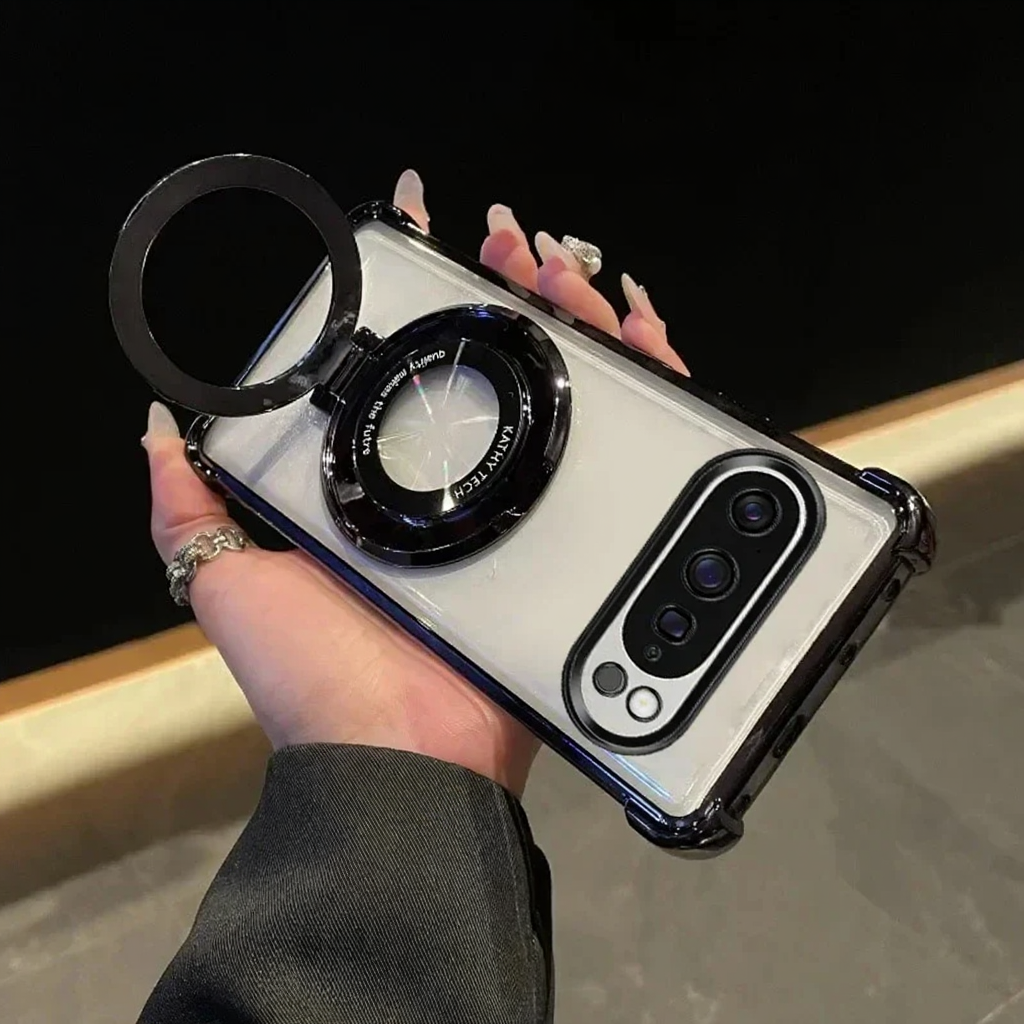 This Ring Holder Clear Protection Case is made using a combination of hard transparent polycarbonate back and shock-absorbing TPU edges for reliable everyday protection. The clear back keeps your phone’s original design visible, while the reinforced corners help protect against scratches, minor drops, and daily impacts.