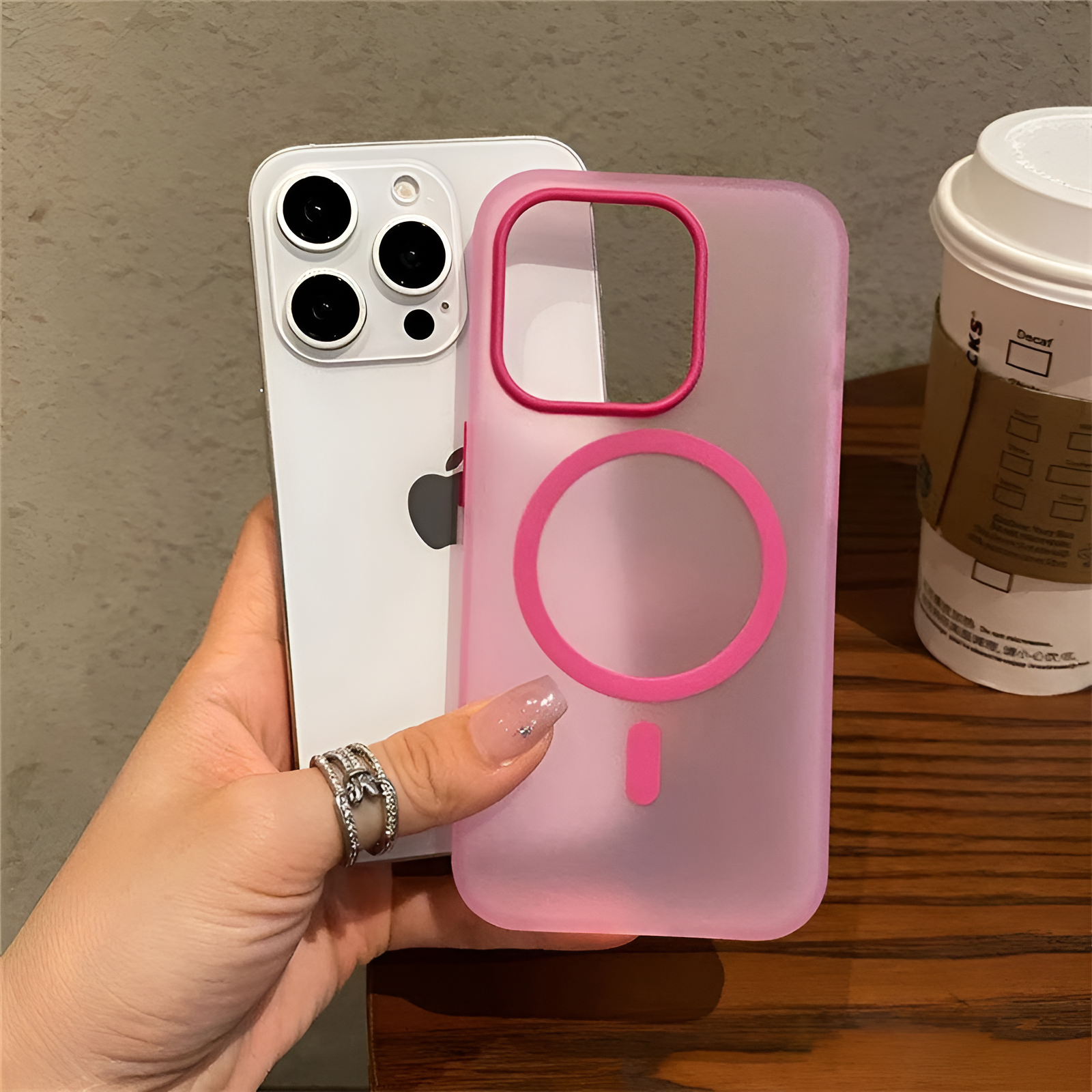 Enhance your iPhone experience with our sleek and stylish MagSafe silicone case. Available in delightful peach, charming pink, and elegant black, this slim-fit protective cover offers premium comfort and grip, integrated seamlessly with MagSafe technology for effortless charging.