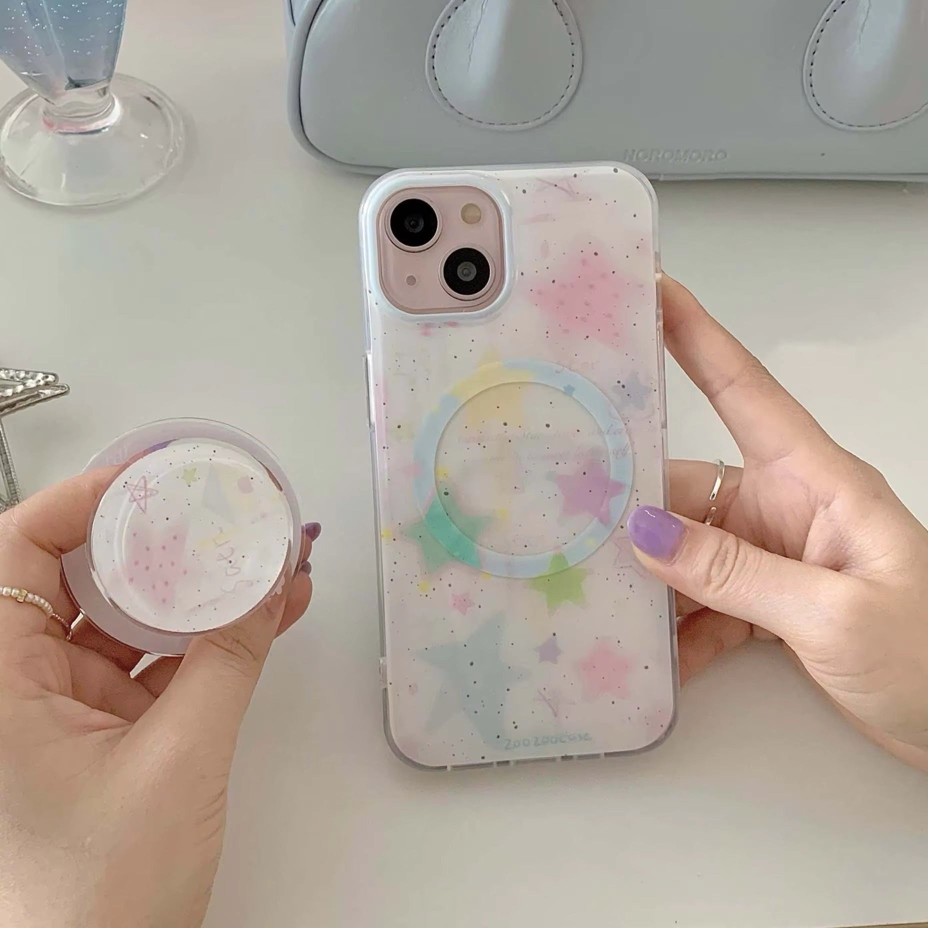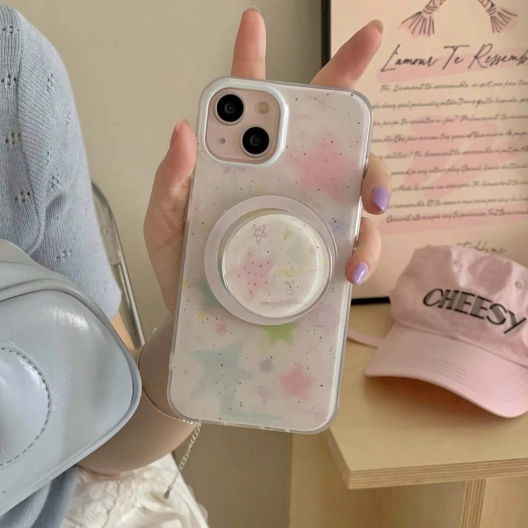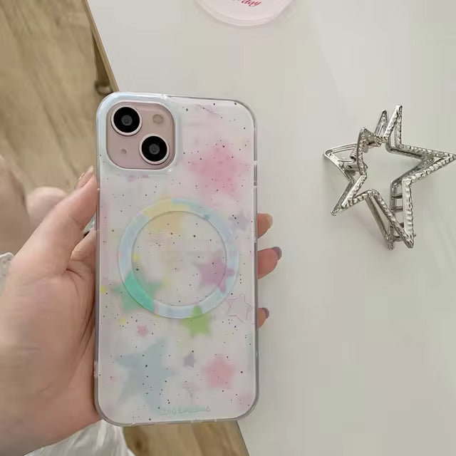 Transform your phone into a galaxy of pastel charm with the Dreamy Stardust Case. Featuring a playful blend of soft hues, star motifs, and a smooth, glossy finish, this case captures the magic of a starlit sky. With its lightweight yet sturdy design and an integrated grip ring, it's as practical as it is beautiful. Perfect for those who adore whimsical and celestial aesthetics.