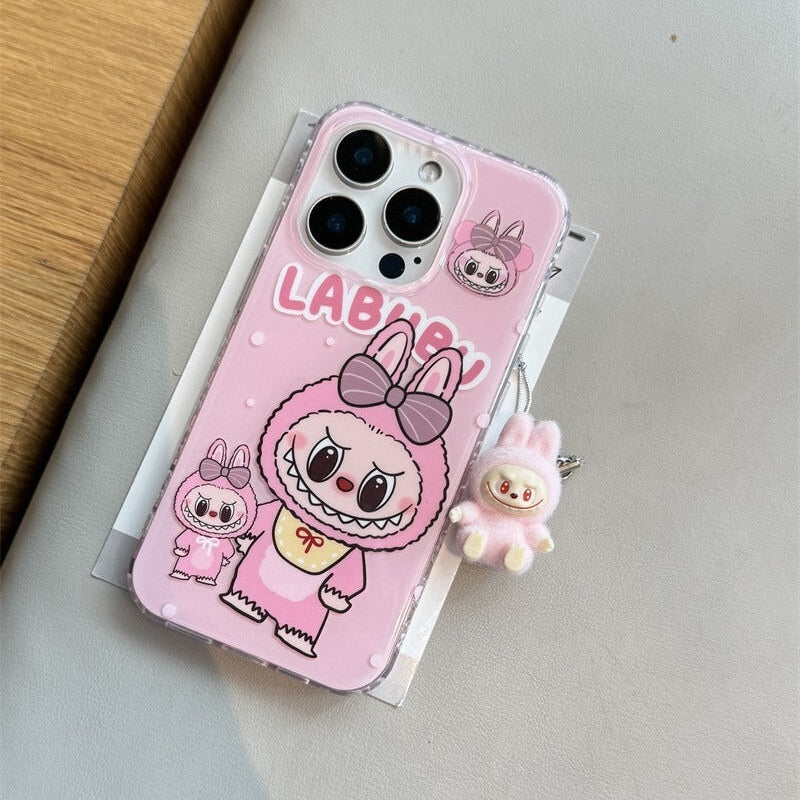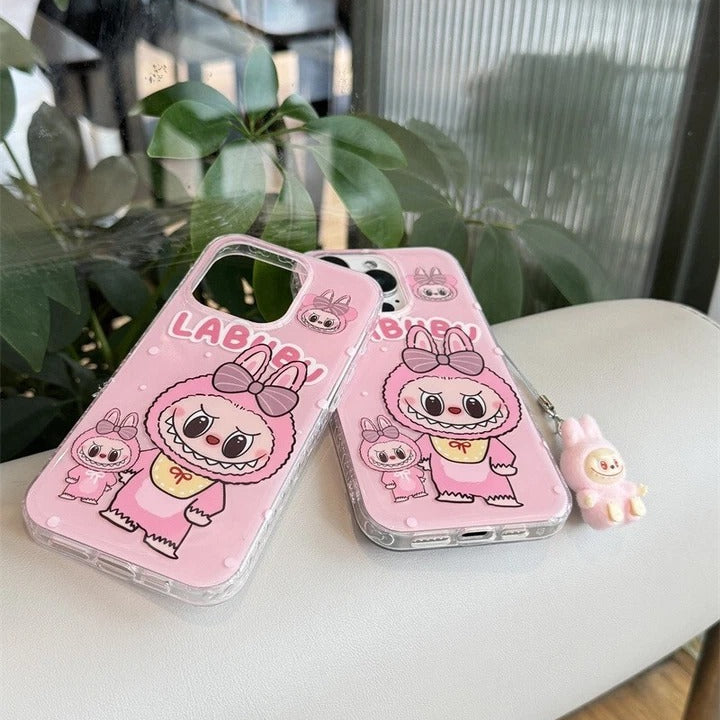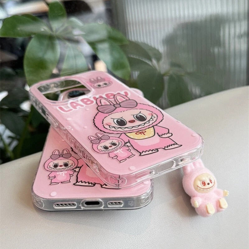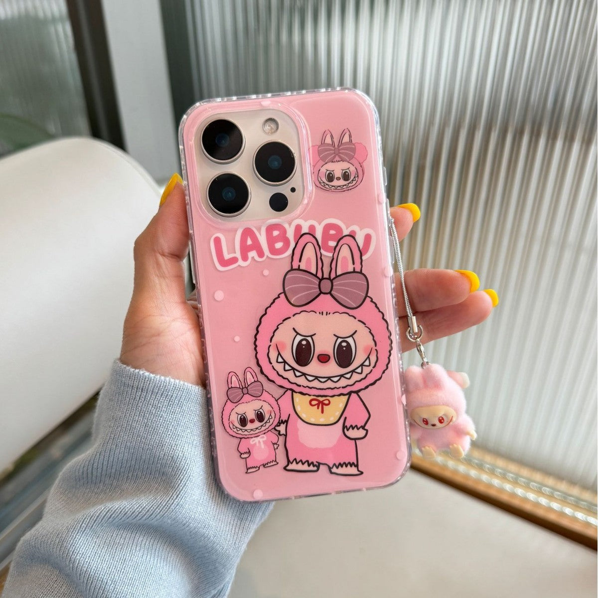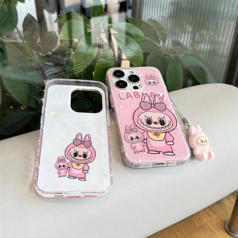 Bring fun and mischief to your phone with this adorable LABUBU-themed case! Featuring the cheeky pink bunny in a playful bow outfit, this case comes with a matching plush charm for that extra dose of cuteness. A must-have for collectors and girly style lovers who adore quirky and kawaii characters.