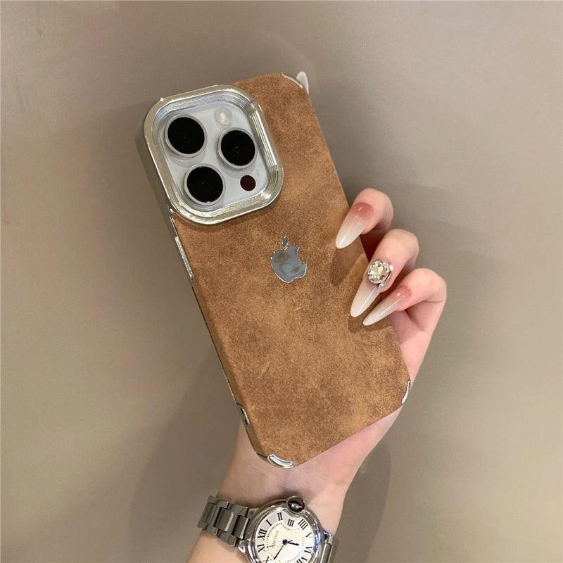 Elevate your iPhone style with our Velvet Luxe Brown Case, crafted for those who crave luxury in every detail. Featuring a rich suede-texture finish, metallic accents, and a secure grip frame, this case doesn’t just protect—it makes a statement. Perfect for pairing with your glam nails, jewelry, and your favorite watch. Compatible with iPhone Pro models.