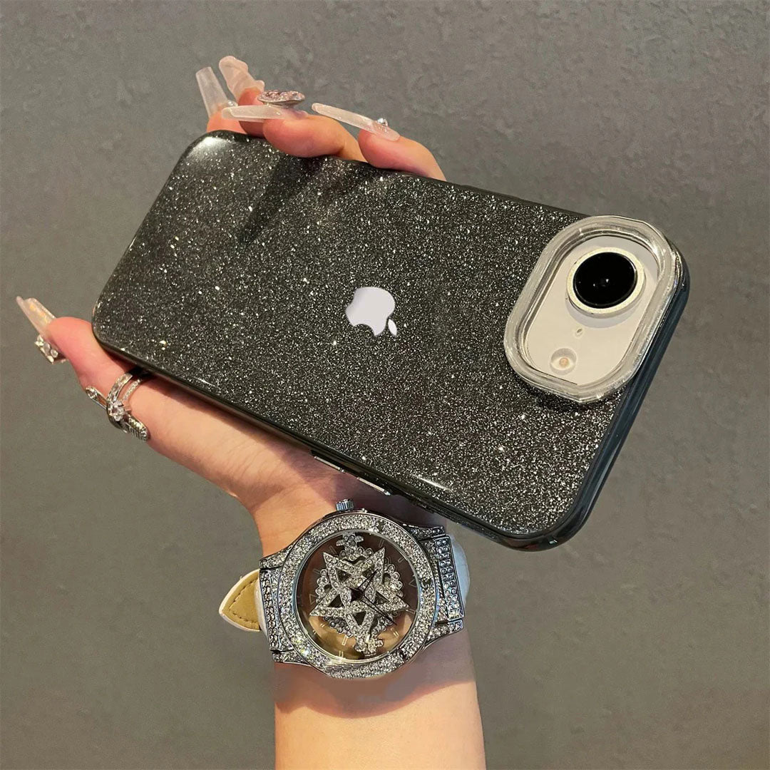 The Starlit Eclipse Case captures the mysterious beauty of a night sky, blending deep black tones with a shimmering stardust finish. Designed for those who crave both elegance and protection, this case adds a cosmic touch to your device while keeping it safe from daily wear. The sleek, sparkling surface paired with a crystal-clear camera guard makes it the perfect blend of function and fashion.