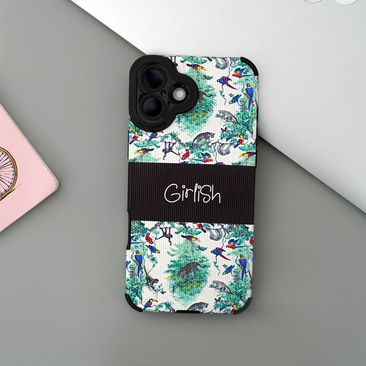 Make a statement with the iPhone - Exotic Girlish Case, a perfect blend of elegance and vibrancy. Featuring a captivating design of exotic birds and lush greenery, this case brings a tropical charm to your phone. Designed for fashion-forward individuals, it not only enhances your phone's look but also provides reliable protection. The "Girlish" branding adds a chic, feminine touch, making this case a must-have accessory for style enthusiasts.