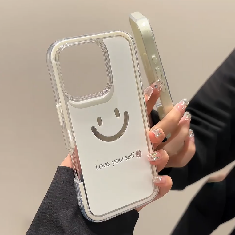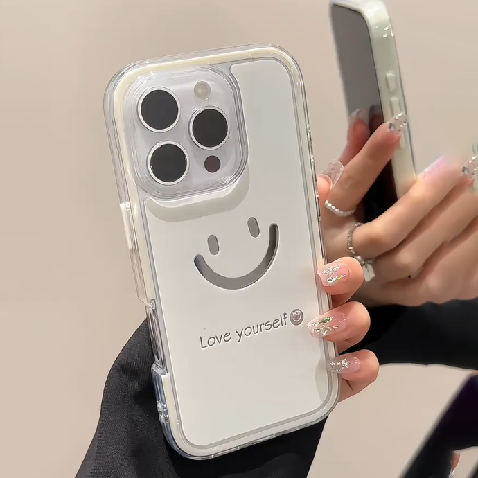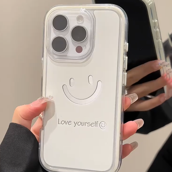 Featuring a minimalist smiley face and a gentle reminder to love yourself, this case adds charm and protection. Made with durable, shock-resistant material and a snug fit for all-day safety.