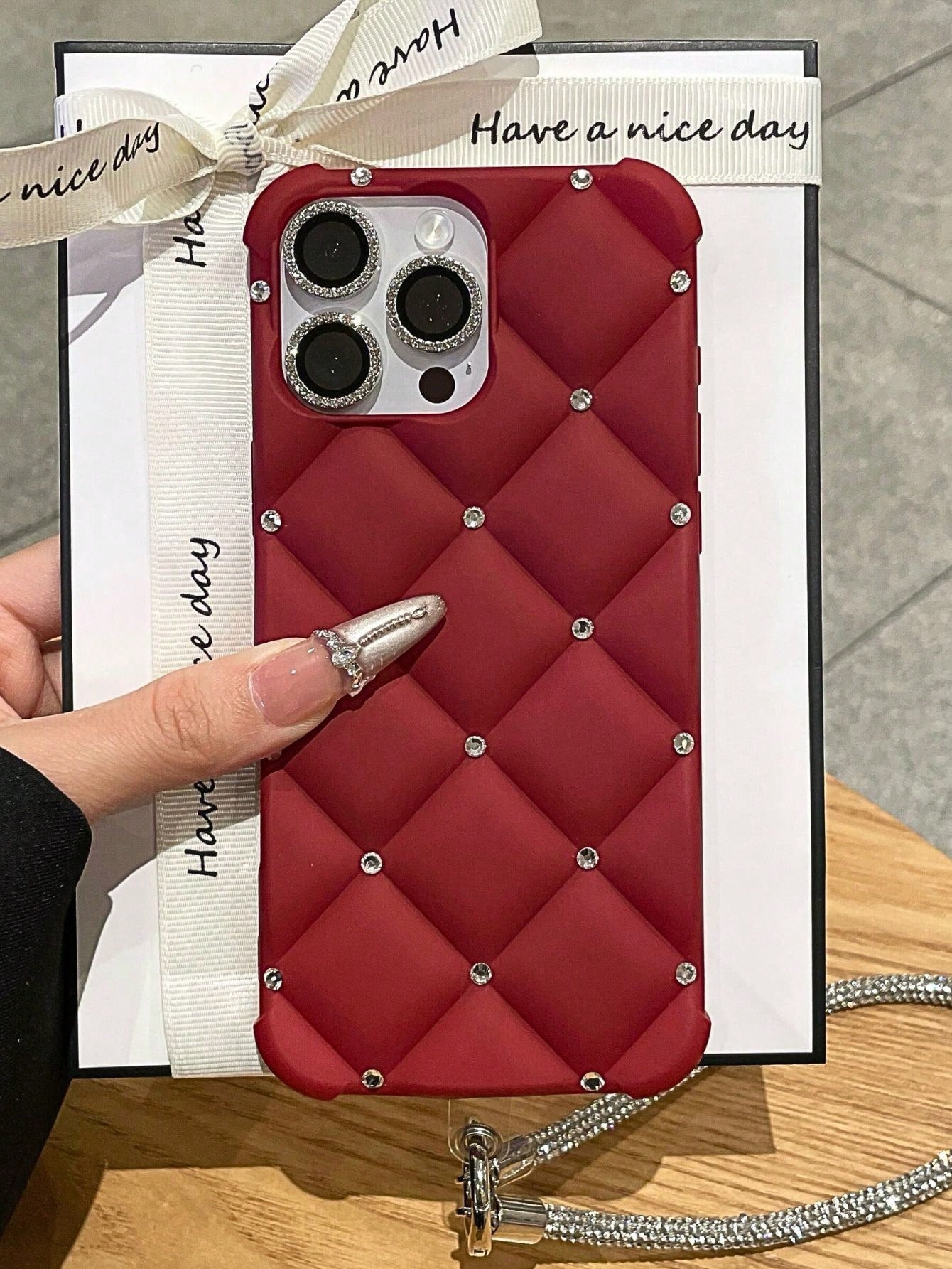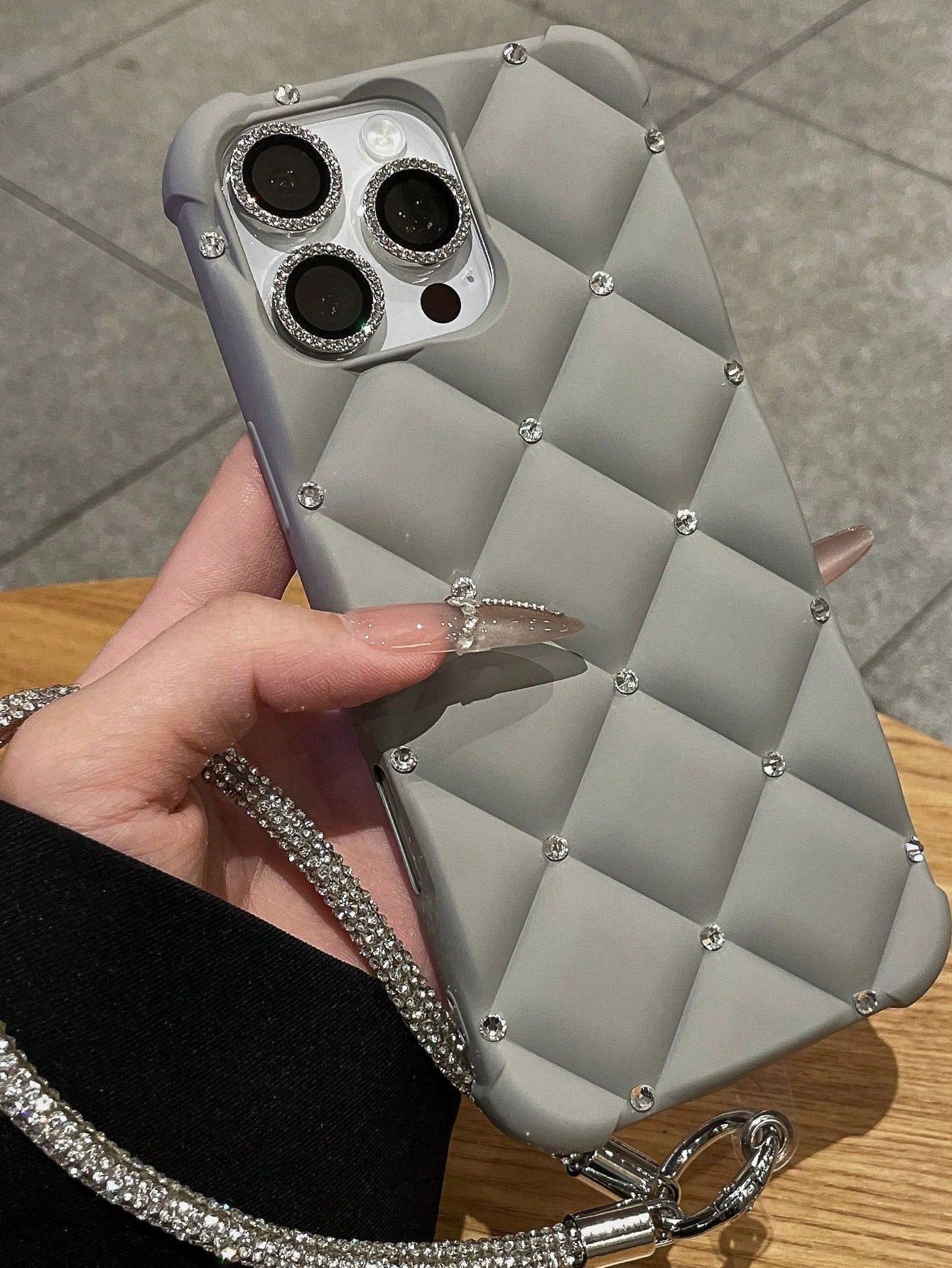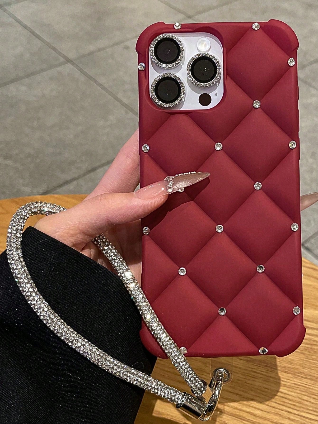 Turn your phone into a fashion statement with this luxury diamond pattern rhinestone case. Featuring a quilted 3D design adorned with sparkling rhinestones, it delivers both glamour and protection. The solid color finish offers a classy, minimal look, while the detachable bling crossbody strap adds hands-free convenience for parties, travel, or daily wear.