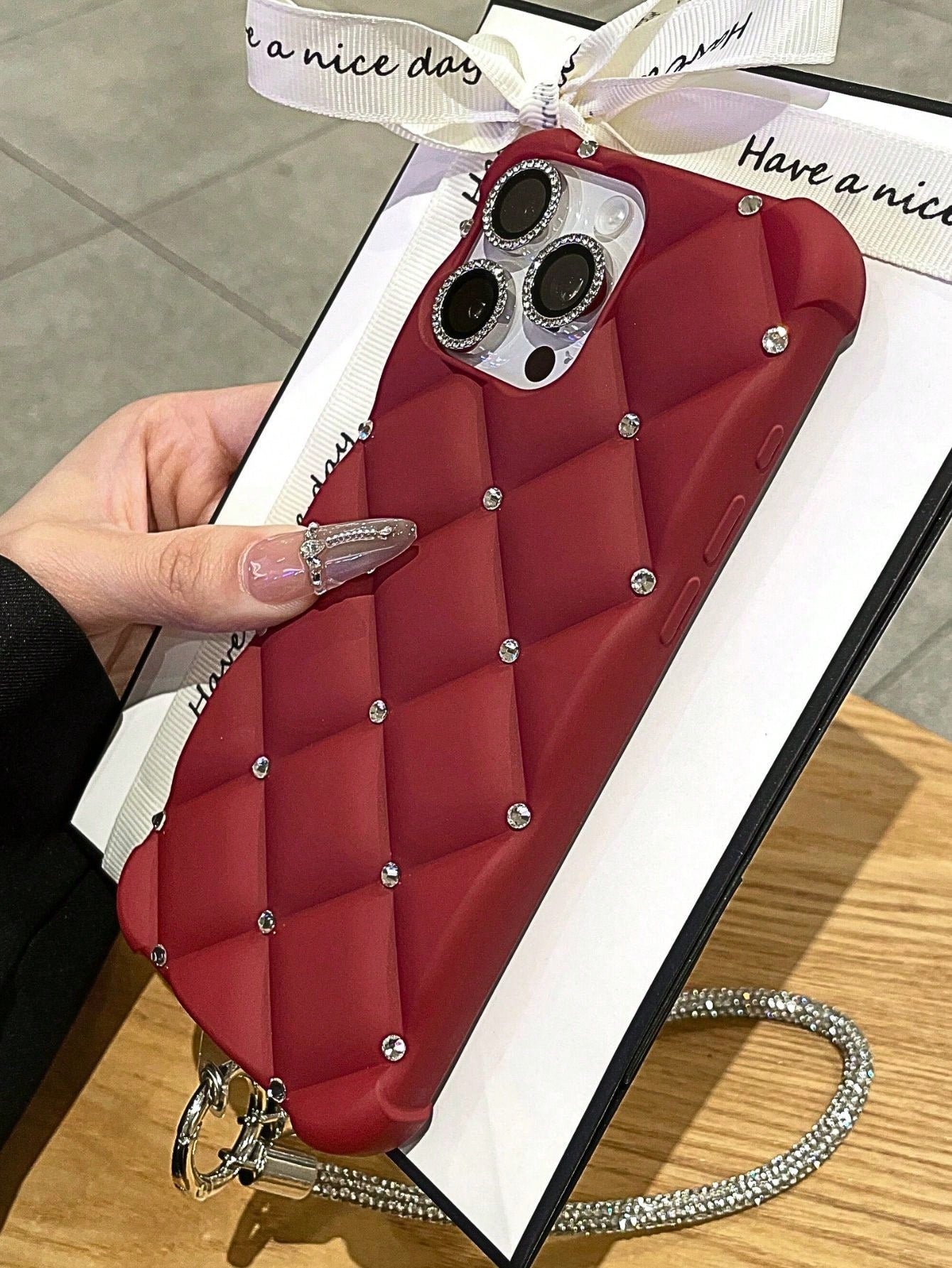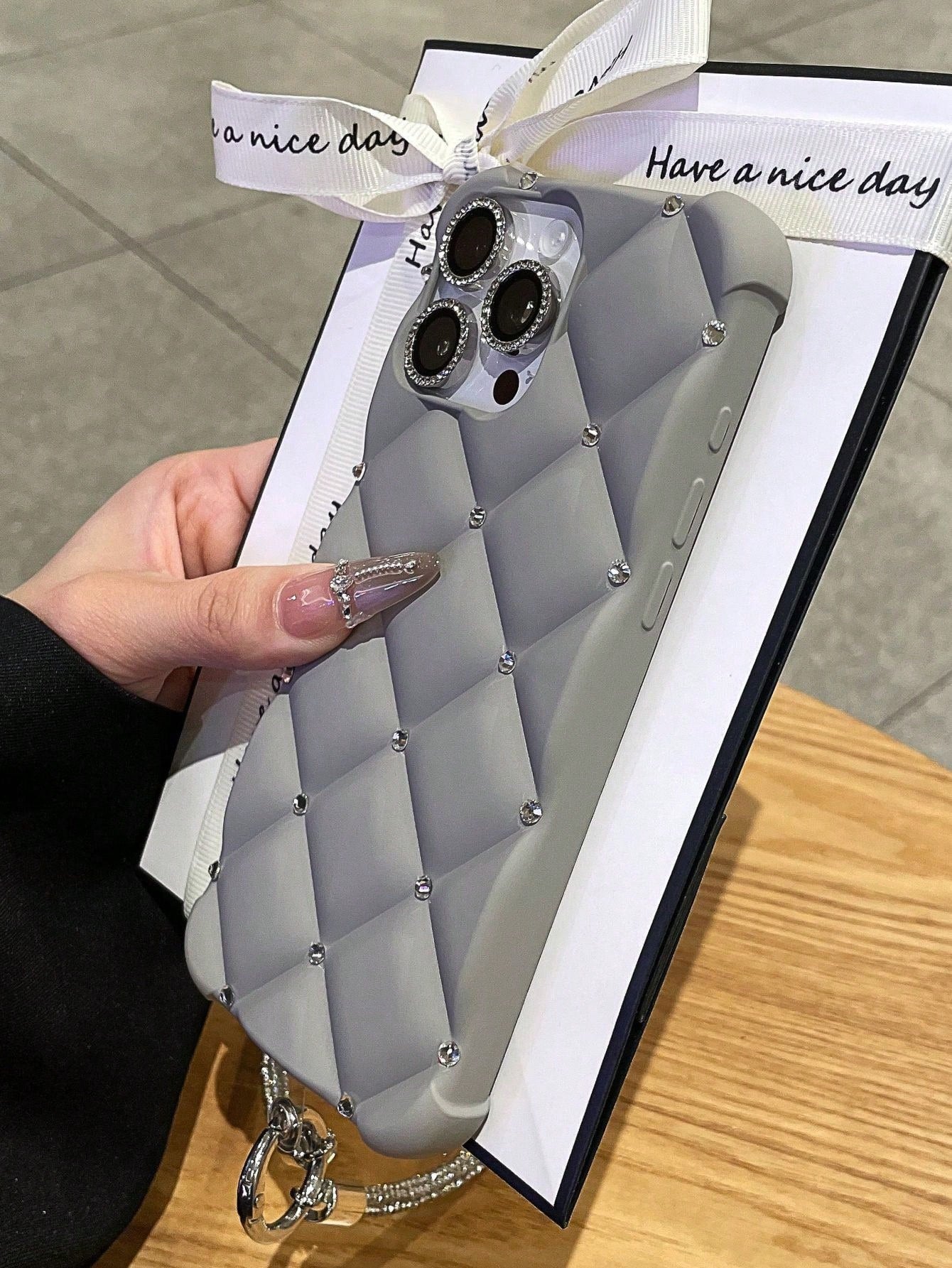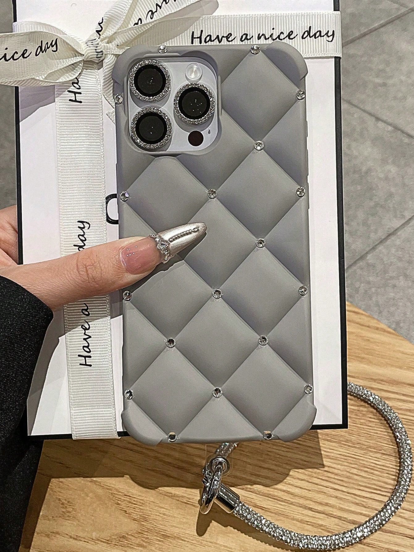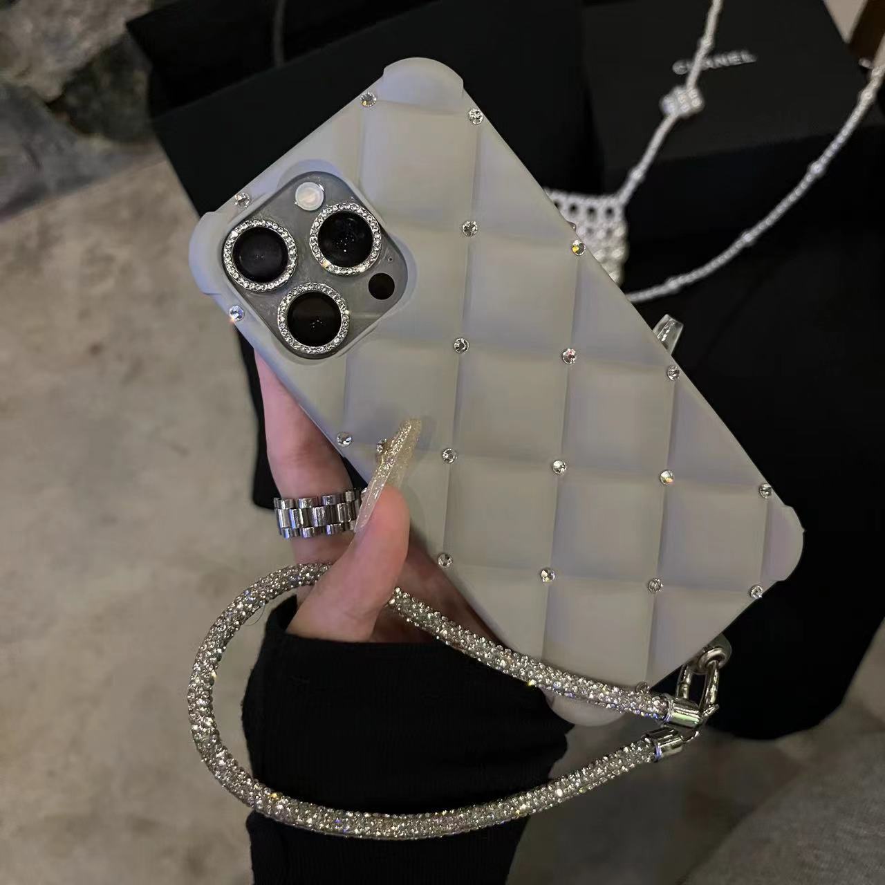 Turn your phone into a fashion statement with this luxury diamond pattern rhinestone case. Featuring a quilted 3D design adorned with sparkling rhinestones, it delivers both glamour and protection. The solid color finish offers a classy, minimal look, while the detachable bling crossbody strap adds hands-free convenience for parties, travel, or daily wear.