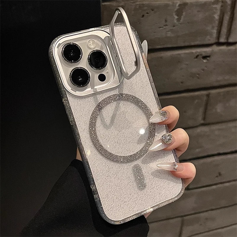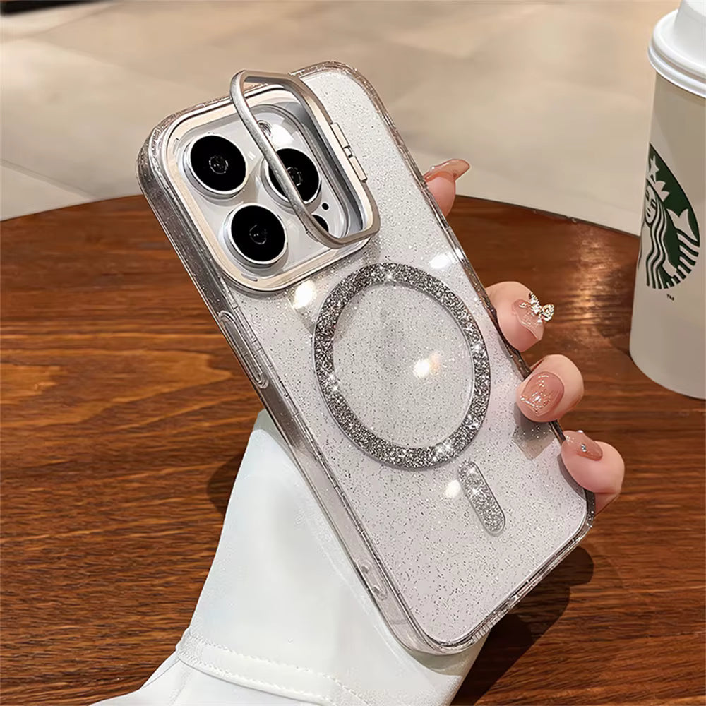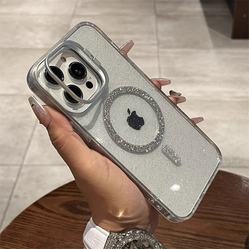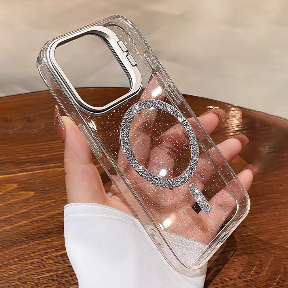 Add a touch of sparkle to your phone while keeping it safe and MagSafe-ready! This transparent glitter case features a sleek, minimal design with built-in MagSafe compatibility, ensuring seamless wireless charging and accessory support.