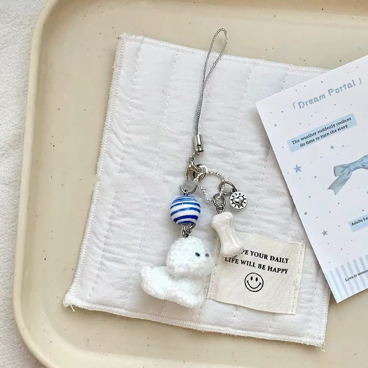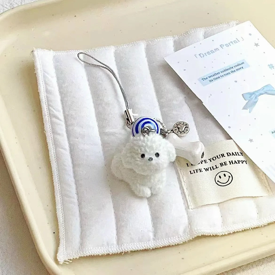 Carry a pocket‑sized pup with you wherever you go! This Puffy Pup Charm lanyard features an ultra‑soft, cloud‑like plush puppy with sparkling bead‑eyes, a striped glass bead accent, and a sweet bone & heart medallion dangling from a sturdy silver clip. Perfect for keys, backpacks, or purse straps, its lightweight design and secure lobster clasp make it easy to attach and remove. Whether you’re a dog lover or just love cute accessories, this adorable keychain adds a playful touch to your everyday carry. Makes a delightful gift or stocking stuffer for anyone who can’t resist puppy love