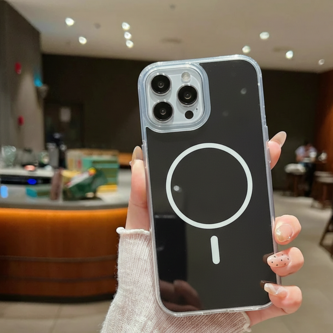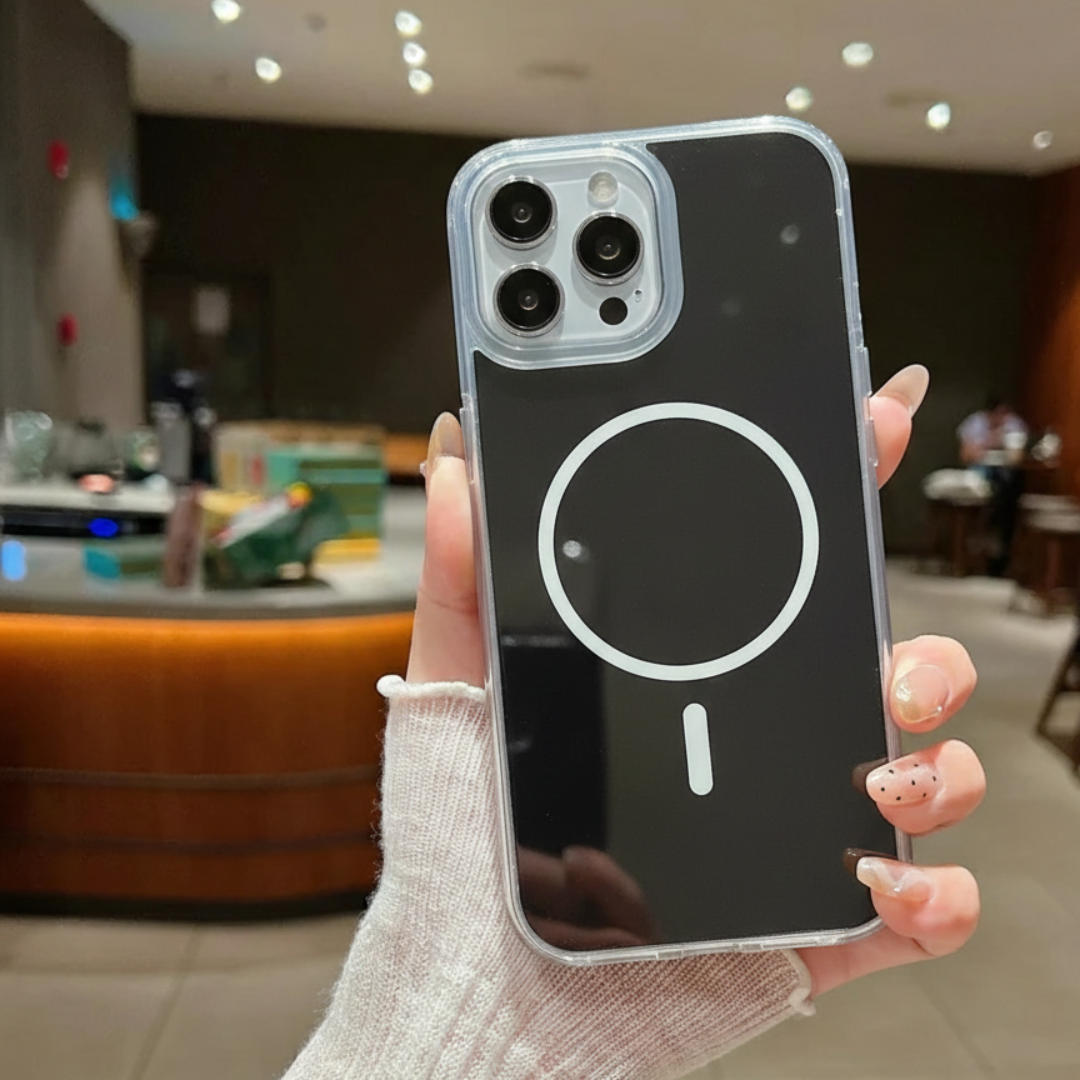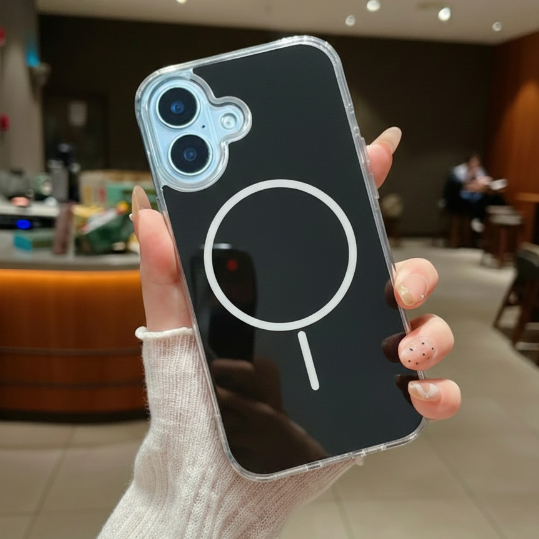 Designed for everyday protection with a clean, modern look, the AeroMag Transparent Bumper Case combines strong magnetic support with a durable transparent bumper frame. The built-in magnetic ring ensures secure charging and accessory attachment, while the anti-fingerprint finish keeps your case looking fresh all day. Its shock-absorbing bumper edges protect against drops, dust, and daily wear without adding bulk. Slim, grippy, and reliable perfect for daily use.