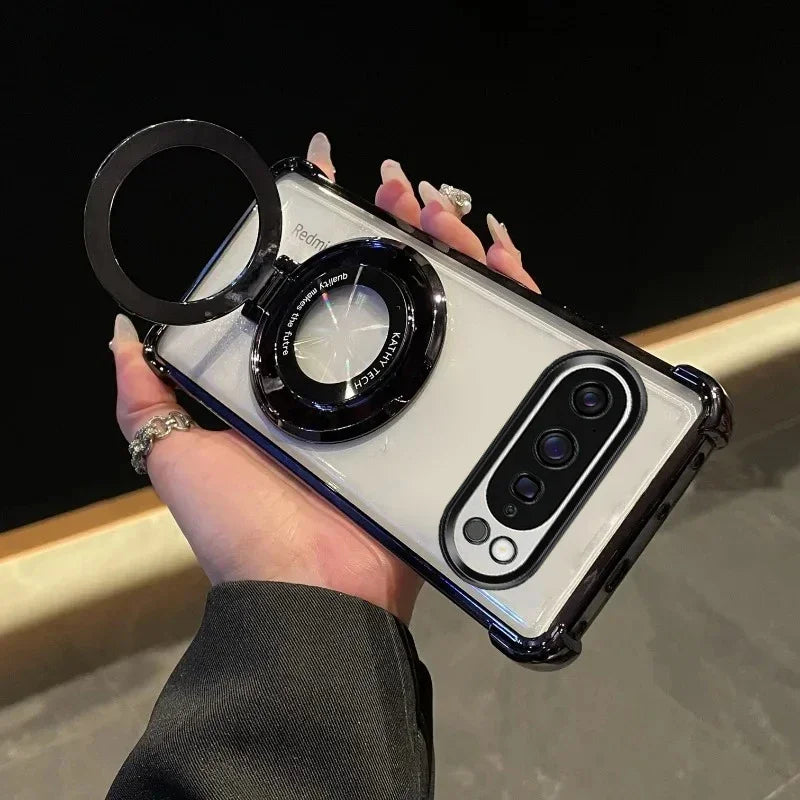 This Ring Holder Clear Protection Case is made using a combination of hard transparent polycarbonate back and shock-absorbing TPU edges for reliable everyday protection. The clear back keeps your phone’s original design visible, while the reinforced corners help protect against scratches, minor drops, and daily impacts.