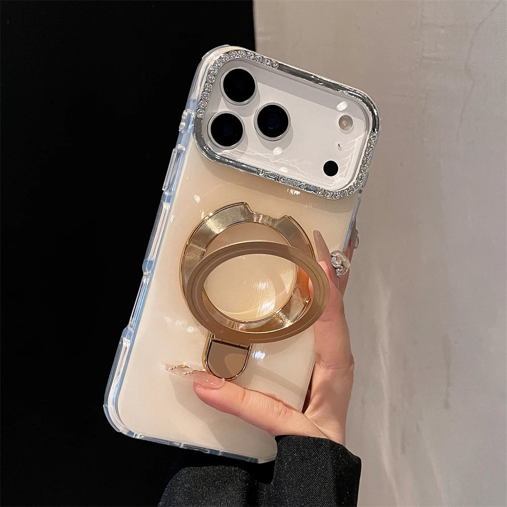 The Glam Ring Stand Case combines stylish sparkle with everyday practicality. Designed with a glossy finish and a built-in rotating ring stand, this case adds a touch of elegance while offering a secure, comfortable grip. The raised, rhinestone-lined camera frame enhances both protection and glam, keeping your lens safe from scratches and bumps. Lightweight yet durable, it provides reliable shock absorption and full access to all buttons and ports—perfect for anyone who wants a chic, functional upgrade for their phone.