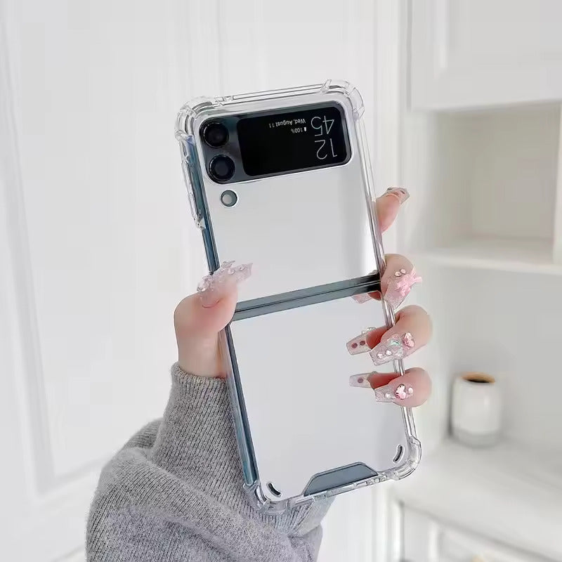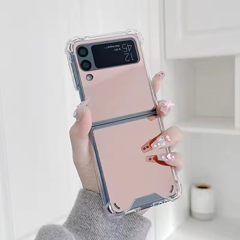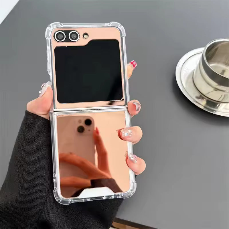 Gold Mirror Shockproof Case—where elegance meets durability for your Galaxy Z Flip. This case features a stunning reflective gold finish that doubles as a mirror, making it both chic and practical. Reinforced shockproof edges provide all-around protection against drops and bumps. Lightweight yet sturdy, it keeps your phone safe while turning heads with every flip.