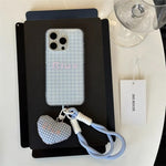 Brighten up your phone with our Cute Blue and Pink Checkered Case, featuring a charming heart pendant wrist strap. This delightful design combines playful colors and a functional accessory to keep your phone secure and stylish.
