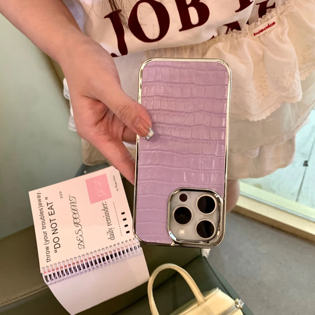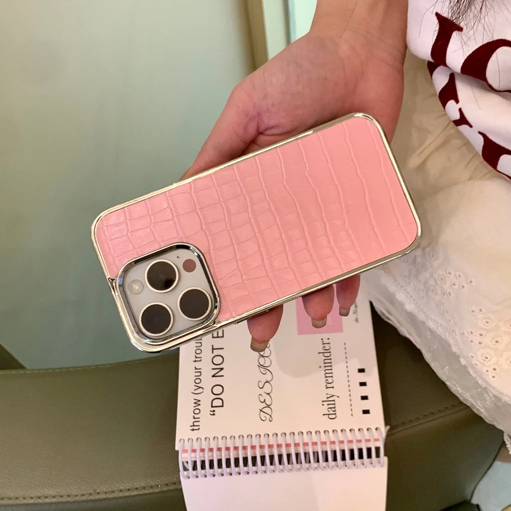 Crafted with a soft crocodile-texture finish and framed with sleek metallic edges, this case brings together style, comfort, and protection in one perfect accessory.